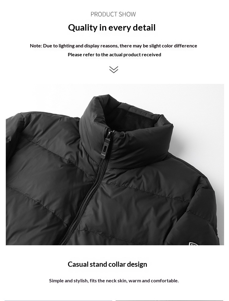 Autumn And Winter Men's Stand-up Collar Warm Down Jacket.