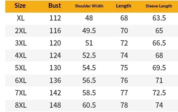 Size: XL,XXL,3XL,4XL,5XL,6XL,7XL,8XL